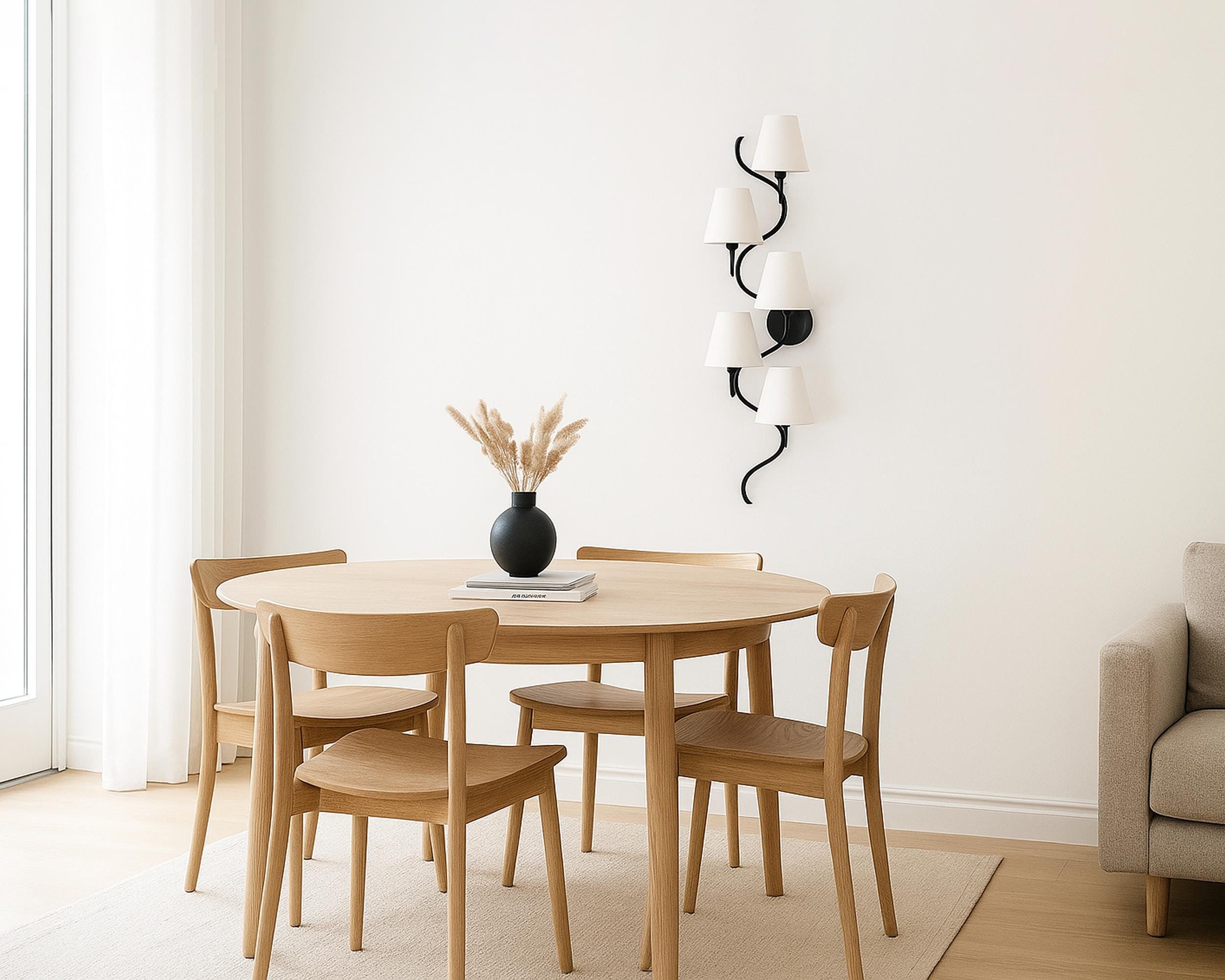 Matte Black 5‑Light Sculptural Wall Sconce | Steel, Aluminium & Brass | E14 Hardwired Statement Lighting (38”)