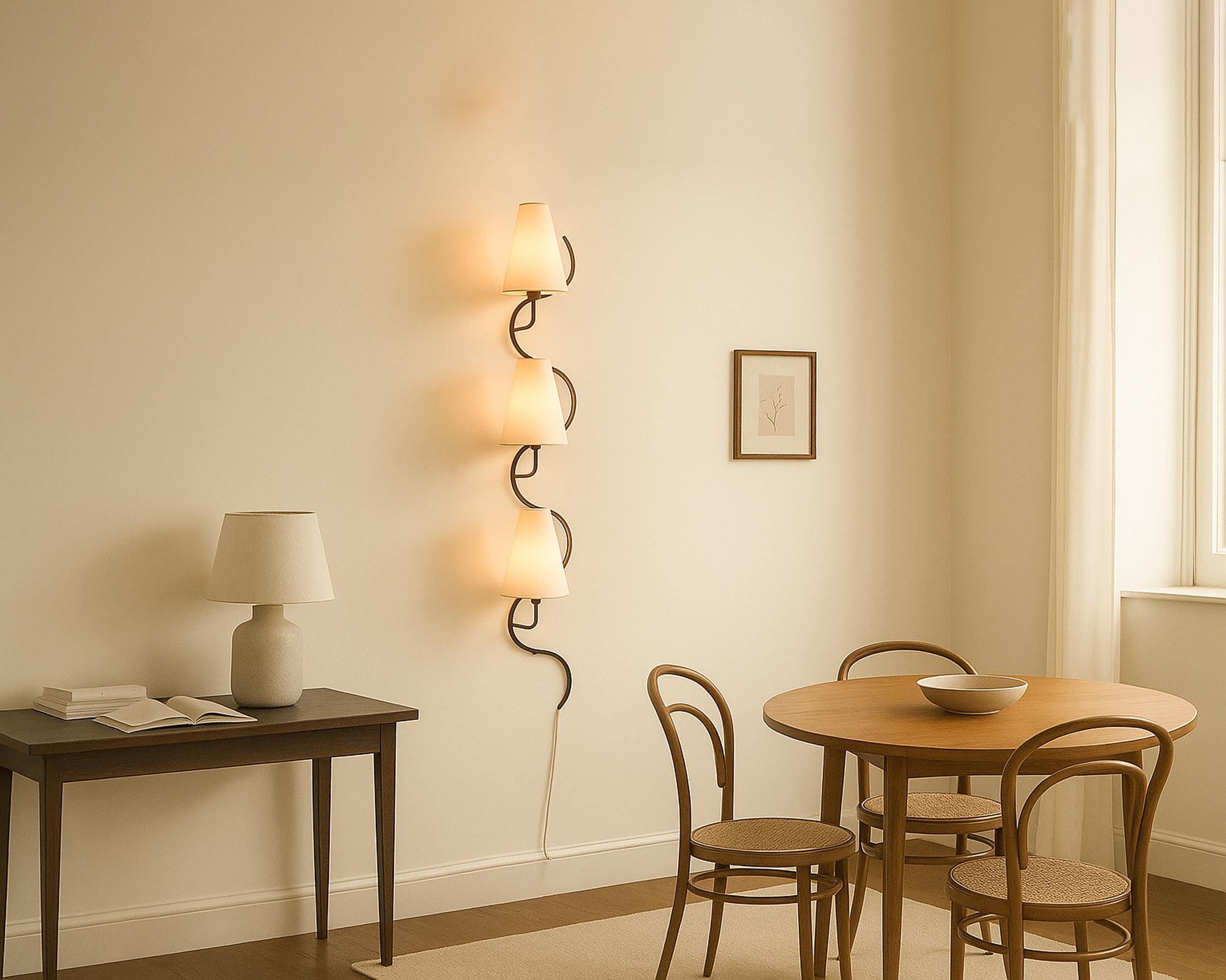 Vertical Cascade 3-Light Matte Black Wall Sconce with Fabric Shades – Contemporary Statement Lighting for Refined Interiors
